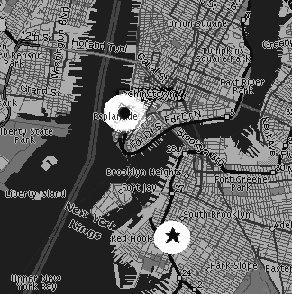 Debris path: WTC ( . ) to Carroll Gardens, Brooklyn ( * ) Approx. 3.5 lineal km. |