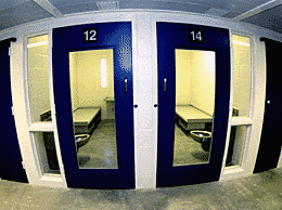 The trio of guards look on from their perch as the 192 inmates on this floor break up their conversations and amble toward the two-tiered wall of cells on their own. There is no need for the guards to leave the booth. If anything looks suspicious, the officers can flip a switch to eavesdrop on any of the 96 cells, or talk privately with an inmate from the comfort of their post. Although a video camera points toward the day room, ready to document any trouble that might arise, nothing transpires -- the inmates seem more resigned than defiant. Once in their cells, the prisoners close the solid doors and wait to hear the bolt slide into place, as the guards in the control booth move lever after lever.